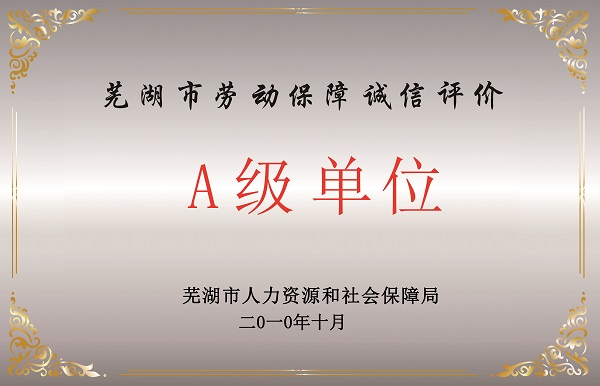 勞動(dòng)保障誠信評(píng)價(jià)A級(jí)單位...