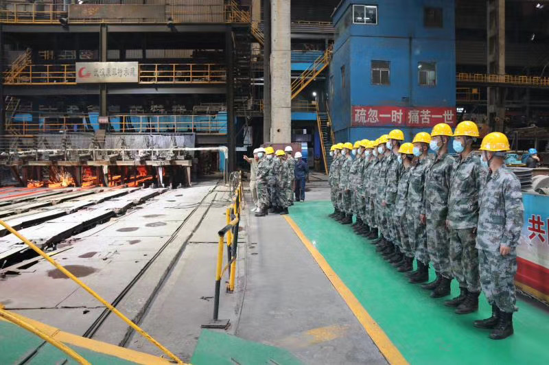 5月20日上午,陽光明媚,在這個愛意滿滿的日子里,“最可愛的人”駐繁部隊官兵及近50名新入伍戰(zhàn)士一行走進富鑫公司觀摩煉鐵、煉鋼生產(chǎn)流程。活動中,全體官兵軍容嚴(yán)整,步伐一致,體現(xiàn)了新時代的革命軍人斗志昂揚的精神面貌。活動結(jié)束后,該部隊政委表示,此次觀摩活動,十分有意義,感受深刻,富鑫鋼鐵的一線職工們給新入伍的同志上了一堂生動形象的國防教育課。通過現(xiàn)場觀看煉鐵、煉鋼的生產(chǎn)流程,教育全體官兵,只有在革命的艱難困苦中戰(zhàn)勝敵人,在生活的巨大壓力中戰(zhàn)勝自己,只有把自己的追求和祖國、人民的利益聯(lián)系在一起的時候,才會創(chuàng)造奇跡,才會成長成為鋼鐵戰(zhàn)士,牢固樹立為革命獻(xiàn)身,鋼鐵般的意志和頑強奮斗的品質(zhì)。